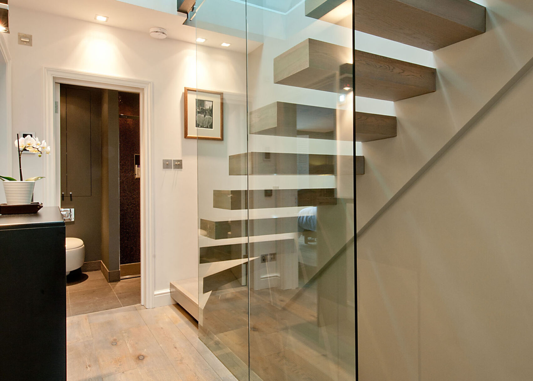 Glass floor installed in a contemporary refurbishment for private clients.